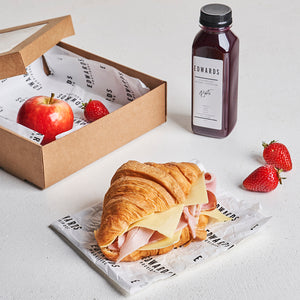 Keep their attention on your presentation rather than their rumbling tummy! This easy, corporate catering option contains everything you need for a satisfying breakfast or brunch for a minimum order of 6 people. Take all the guess work out of figuring out of much of what to order for your employees or friends and we'll arrange a box for each. Bendigo catering at it's tastiest and easiest! You might like to pair this with our Sweet Treats Box!