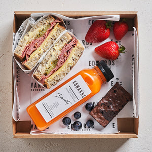Get ready for a delicious lunch with our convenient Sandwich and Cake Box! This easy, corporate catering option contains everything you need for a satisfying midday meal, for a minimum order of 6 people. Take all the guess work out of figuring out of much of what to order for your employees or friends and we'll arrange a box for each. Bendigo catering at it's tastiest and easiest!