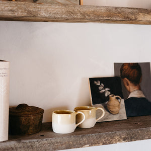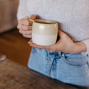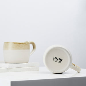 Half dipped with a natural finish and organic feel, this swatch-design mug features the Edwards stamp underneath the base. The soft sage green glaze, a custom colour for Edwards Providore, pairs beautifully with the natural raw finish of the lower half of the outside of the mug.