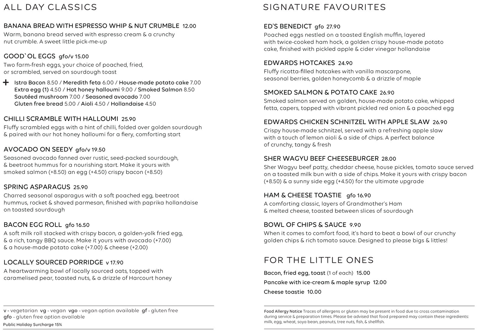 Open 7 days a week, Edwards Providore Cafe is the perfect location to refuel and recharge. Using the same local and fresh produce there is something to suit the entire family, including the little ones. Enjoy a beautiful selection of muffins, pastries, cakes, slices and biscuits baked fresh daily. Indulge in our Industry Beans Alltime Espresso blend of coffee.